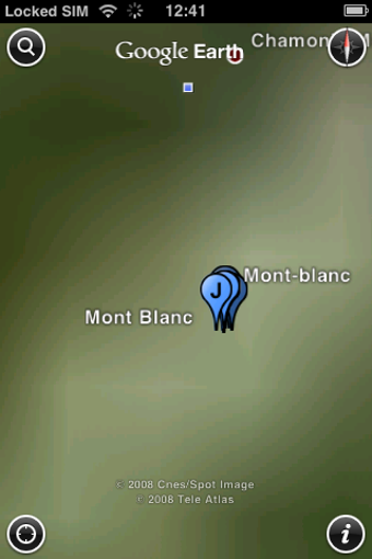 Google Earth utilise aussi le GPS (iPhone) pour vous localiser, et offre l'ajout de liens directs vers Wikipedia et Panoramio pour plus de détails (en texte et photos) sur la zone survolée. On attend avec impatience l'arrivée de StreetView pour découvrir si l'intégration a été pensée jusqu'au bout.D'ici là, une petite boussole permet de pointer automatiquement le nord, au cas où.